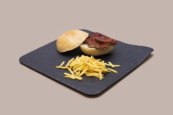 Hamburguesita de buey, bacon crujiente y s. barbacoa