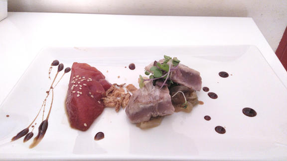 Ingredientes: Atún, Cebolla, Soja, Sandía, Sésamo, Jengibre, Balsámico y Micro-Brotes. Horario de venta al público: De 13:30 a 15:30 h. y de 20:30 a fin de existencias