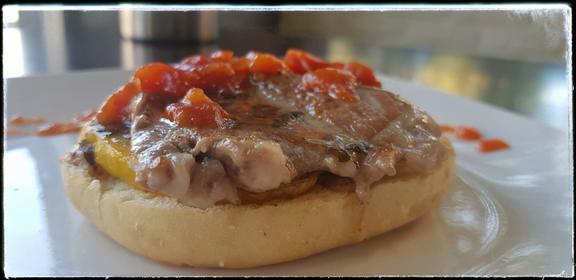 Ingredientes: mollete de presa con salsa argentina, patata anadera y confitura de tomate de huerta Horario de venta al público: de 13h-16h y de 19h30-23h30