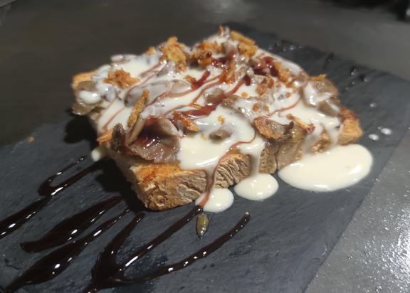 Ingredientes: Tosta con mermelada de boletus y salteado de setas de temporada bañadas con crema de queso azul, cebolla crujiente y reducción balsámica de frambuesa. Horario: De 12:00 a 17:00 y de 20:00 a 23:00 h.
