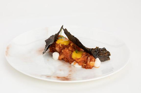 Tapa creativa | Peixe Aliñado con salsa de ajipanca, xenxibre e soia e base de emulsión de San Simón e cítricos nori con mel